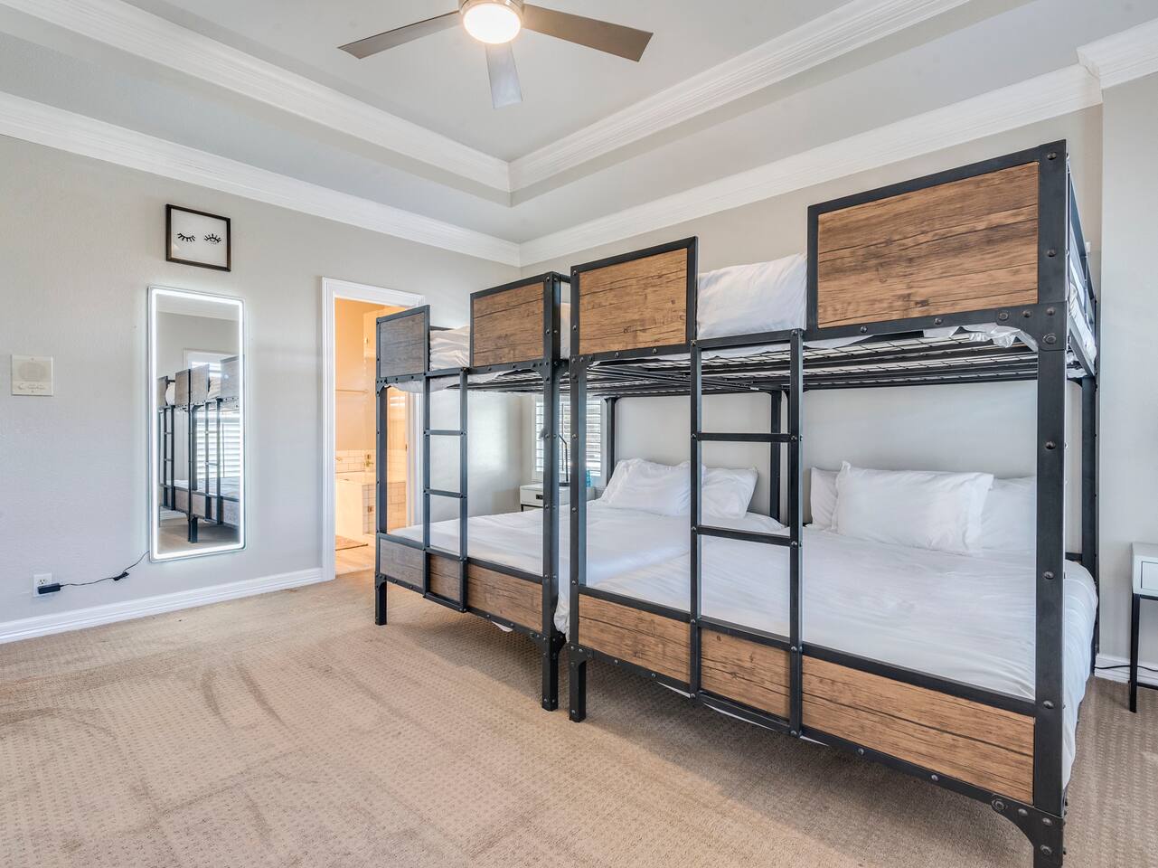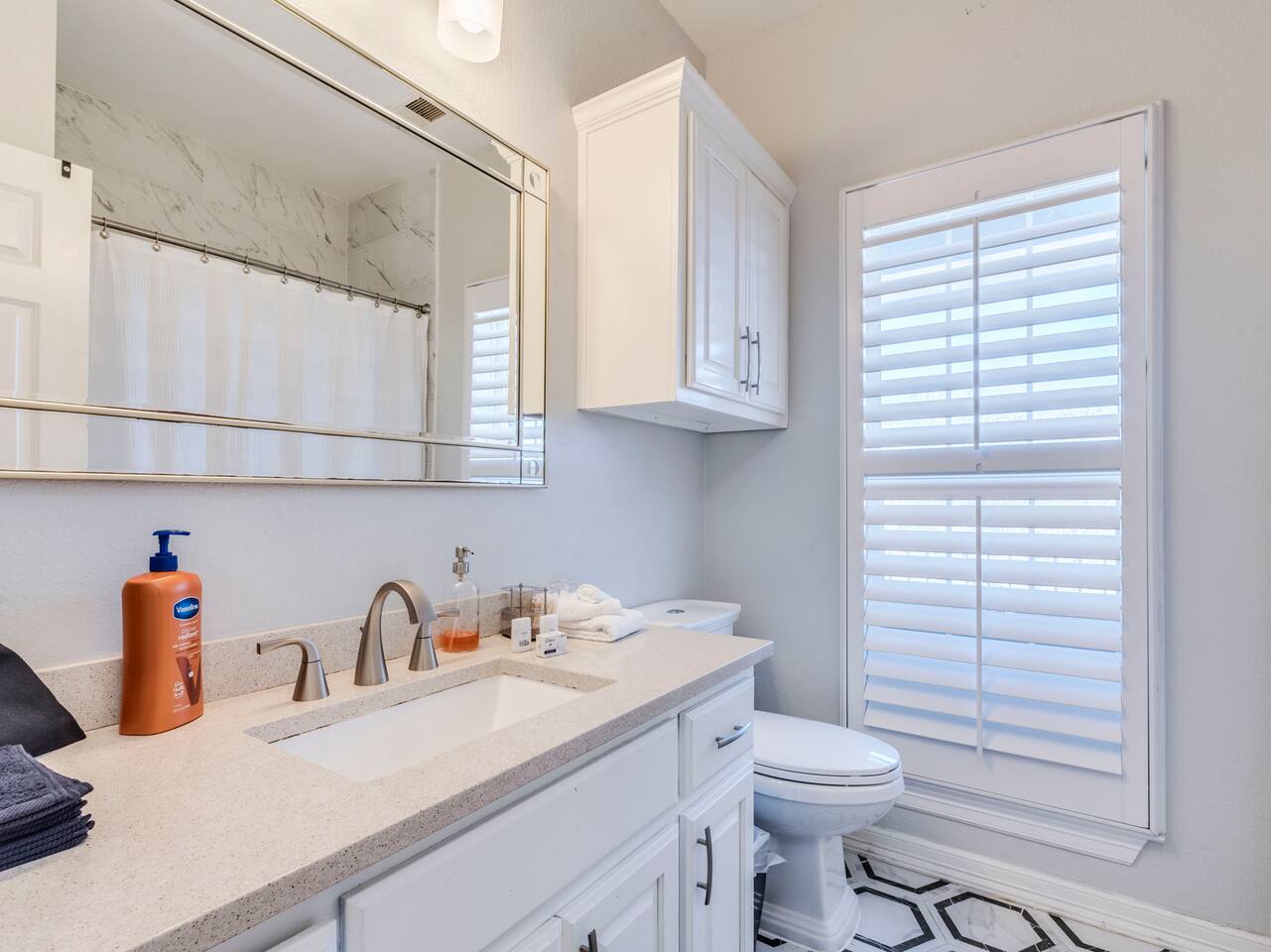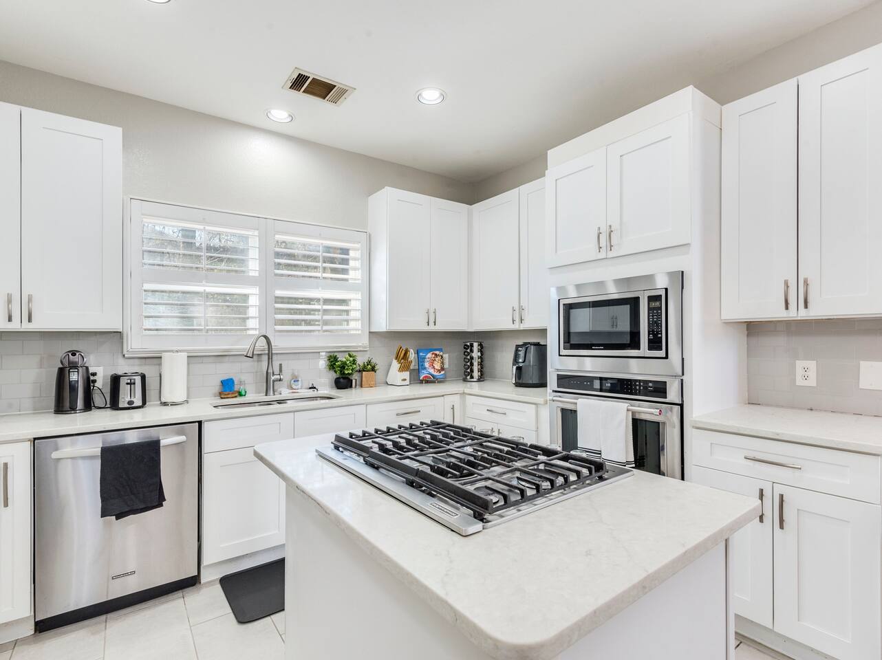 Travis Heights on Lady Bird Lake (Town Lake) Situated amid historic live oaks in the coveted Travis Heights neighborhood, a choice getaway awaits at this spacious 4BR/2.5BA home. Highlights include a sleek kitchen, a firepit, and modern furnishings throughout. Offering a prime location within walking distance of nature, culture, and cuisine. Enjoy easy access to parks, green spaces, a hike and bike trail, and a plethora of dining, shopping, and entertainment options. The road has ample sidewalk space and is very bikeable. The best Downtown has to offer is just outside our door. ★LOCATION★ Location is near Downtown Austin’s best food, drinks, shopping, parks, nightlife, sights, and landmarks. Rent bikes or scooters and hop on the Ann & Roy Butler Hike/Bike Trail in 2 minutes for views of downtown and Lady Bird Lake (Town Lake). During warmer months, rent kayaks or paddle boards at the lake and enjoy lovely views from the water. Little Stacy Neighborhood Park (0.75 miles) features play structures, a basketball court, and tennis courts. Big Stacy offers vast green spaces and a public pool (1 mile). Walk 1 mile to South Congress Avenue for eclectic cafes, fine dining, and boutique shopping. Lady Bird Lake (Town Lake) is across the street. Rainey Street offers a bustling promenade of restaurants, music venues, and pubs (0.6 mile). Or continue into the heart of downtown for even more culture, cuisine, and entertainment. Don’t miss Zilker Park, home to the ACL Music Festival. While there, take a refreshing dip at Barton Springs Pool (3 miles). And between March and October don't forget to spot over 1 Million Mexican Free-Tailed Bats emerge from underneath the Congress Ave. Bridge during sunset! Walk -1 min to Lady Bird Lake (Town Lake) -15 min walk to Downtown Austin Drive -2 min Uber ride to Downtown -5 mins to Barton Springs, Zilker Park, ACL festival -5 mins to Emo's, The Buzzmill, Copperhead Club, Taco Joint, and Rosita’s El pastor -10 mins to University of Texas -10 mins to Austin airport, Amphitheatre, F1 track No animals are welcome in this home or are allowed without specific approval. Parking notes: There is free parking available for 4 vehicles. ★SAFTEY★ Our home is located in a safe area, is well-lit, and has an area for private parking. We also have an outside camera above the hallway entrance and outdoor patio that we use to help us conveniently check-in guests, and as an added security benefit for our guests. These cameras do have audio recording capabilities that we are able to review the history of if needed. There are no cameras or audio recording devices inside the home. ★THE HOME★ Everything you need to know about our Red Ribbon Rentals Serviced Rental! ★LIVING AREA★ Unwind into vacation mode on two sofas in the chic living area. In the evening, settle in to enjoy your favorite shows on our 65" 4K TV (just bring your log-ins); and with free 1 GB Wi-Fi from G Fiber you’ll be able to stream anything in 4K. ★KITCHEN & DINING★ Home chefs will love the sleek and modern kitchen, equipped with granite countertops, a double basin sink, and a full suite of energy efficient stainless steel appliances including a refrigerator, microwave, stove-top, oven, and dishwasher. Select teas, coffee, and hot chocolate with an electric kettle and coffee maker. With the essential cookware, silverware, and dinnerware you'll have everything you need to dine-in. When it’s time to eat, gather around the dining table with seating for 8 in the dining room. ★LAUNDRY★ Brand new 2024 Whirlpool Washer and Dryer set installed in February. Plus, there's an Ironing board and Iron too. ★BED & BATH★ This two-story home sleeps over 14 guests in four bedrooms. Find comfort in the primary suite, featuring two full-over-full bunk beds, direct balcony access, and an en-suite bathroom with a double vanity, jetted soaking tub, and a walk-in shower. Sleep soundly in a full bed in the second bedroom, which also has direct balcony access. Both balconies have views of downtown. The third and fourth bedrooms are outfitted with plush queen beds. The guest bathroom is configured with a tub/shower combination. Sleeping essentials include bed linens, pillows, and blankets. Plus, each room is complete with hangars and luggage holders for your convenience! Guest essentials like fresh bath towels, bed sheets, soap, and hairdryer; and toiletries like hand soap, shampoo, conditioner, and body wash. A half bath off the living area provides added convenience. The home also comes equipped with a full working PA system so you'll be able to talk to each other wherever you want in the house! ★GAME ROOM GARAGE★ Gameroom with a full billiards table, foosball, and poker. Also equipped with giant Jenga and Connect 4. If singing is more your style we have a karaoke machine and bean bags as well. Spend the night out OR Spend the night in! The garage has everything you need for a fun staycation experience. ★OUTDOOR AREA & AMENITIES★ Enjoy fresh morning coffee at the bistro table for two or love seats on the balcony. In the afternoon, play cornhole or horseshoes while enjoying a picnic on the lawn. In the evening, gather for stargazing around the outdoor gas firepit.